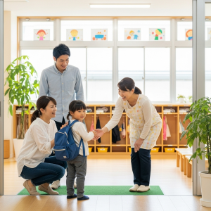 最初の週末に近くの公園へ探検に出かける約束も効果的。新しい環境への期待感を高める工夫となる。
