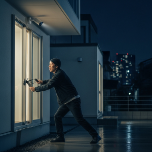 夜間の侵入が中心。センサーライトや防犯カメラで「見られている」意識を与える抑止策が効果的。